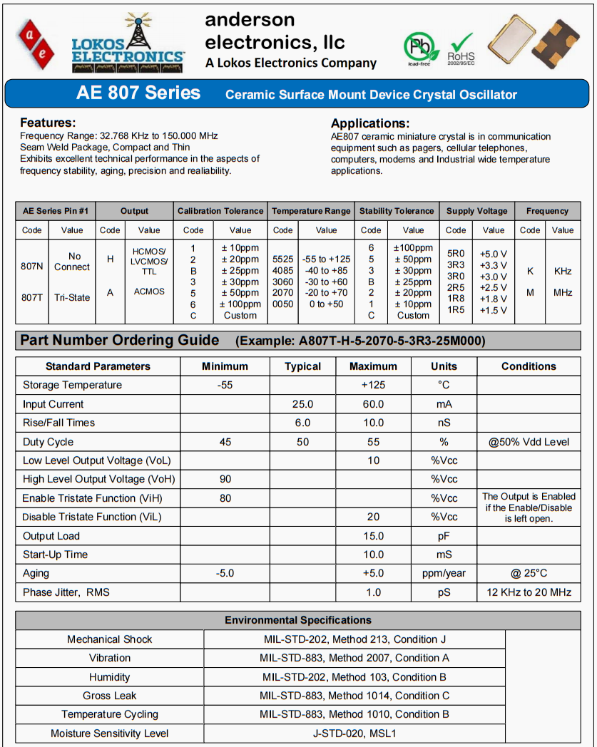 A807N-A-1-5525-1-1R5-24M000進口晶振,安德森環(huán)保無鉛晶振,AE807數(shù)碼相機晶振