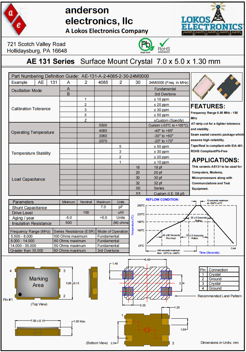 | 案例 | AE131 | A | 2 | 4085 | 2 | 30 | 24M0000 (Freq. in MHz) |