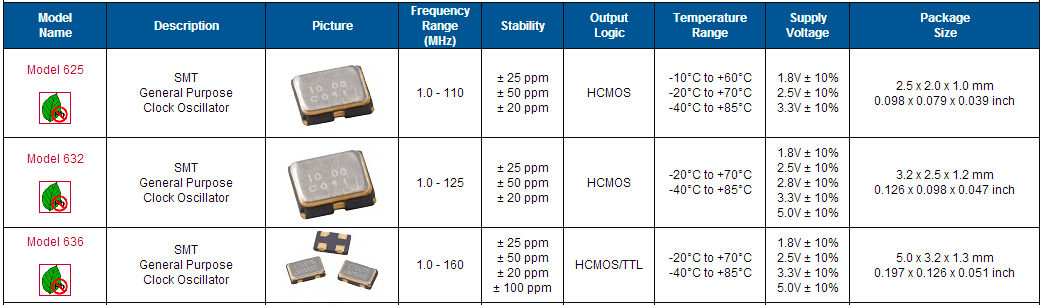| 晶振規格參數 | 型號Model636 | |