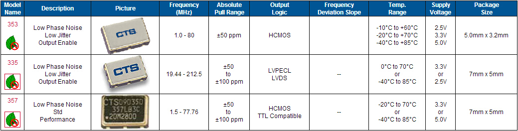 CTS有源晶振,353石英晶振,5032mm壓控晶體振蕩器,VCXO是指這款晶體產品控制功能只有單壓控也就是電壓控制功能,產品本身頻率精度可以隨著電壓搞定起伏來自動調整頻率,使產品永遠控制在一定的頻率范圍,壓控晶振(VCXO)壓控石英晶體振蕩器基本解決方案,PECL輸出,輸出頻率60 MHz到200 MHz之間,出色的低相位噪聲和抖動,三態功能,應用:SDH/ SONET,以太網,基站,筆記本晶振應用, VCXO,壓控晶體應用:調制解調器,ADSL網絡控制器,無線基站,程控交換設備智能手機,筆記本晶振等符合RoHS/無鉛.