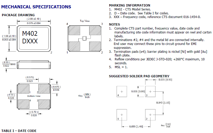 | 402F160XXCLR | CTS晶振 | 402 | MHz Crystal | 16MHz |