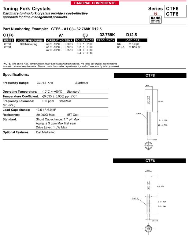 Cardinal晶振,CTF6-A1C3-32.768KD12.5,6G路由器晶振參數表