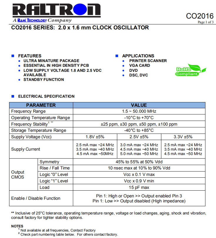 Raltron晶振,CO2016晶振,石英晶體振蕩器.有源晶振只是晶體本身起振需要外部電壓供應(yīng),起振后可直接驅(qū)動(dòng)CMOS集成電路,產(chǎn)品本身已實(shí)現(xiàn)與薄型IC(TSSOP封裝,TVSOP封裝)同樣的1mm厚度,斷開時(shí)的消費(fèi)電流是15µA以下,編帶包裝方式可對(duì)應(yīng)自動(dòng)搭載及IR回流焊接(無(wú)鉛對(duì)應(yīng))產(chǎn)品有幾種電壓供選1.8V,2.5V,3V3.3V,5V,以應(yīng)對(duì)不同IC產(chǎn)品需要.