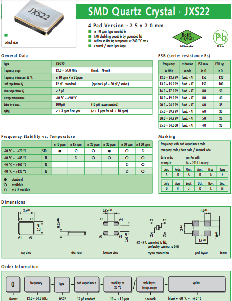 | JAUCH晶振 | 單位 | JXS22晶振 | 石英晶振基本條件 |