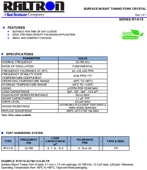 Raltron晶振,RT4115晶振,高品質(zhì)石英晶體.小體積SMD時(shí)鐘晶體諧振器,是貼片音叉晶體,千赫頻率元件,應(yīng)用于時(shí)鐘模塊,智能手機(jī),全球定位系統(tǒng),因產(chǎn)品本身體積小,SMD編帶型,可應(yīng)用于高性能自動(dòng)貼片焊接,被廣泛應(yīng)用到各種小巧的便攜式消費(fèi)電子數(shù)碼時(shí)間產(chǎn)品,環(huán)保性能符合ROHS/無鉛標(biāo)準(zhǔn).