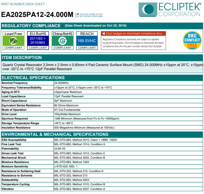 日蝕高品質晶振,EA2025PA12-24.000M晶振,無源四腳晶振,ECLIPTEK已經實施了中國對危險物質(RoHS)的限制措施,以回應國際社會對鉛(鉛)和其他有害物質在電子部件和組件制造中所使用的有害物質的擔憂。ECLIPTEK公司致力于保護環境,作為負責任的企業公民。ECLIPTEK晶振一直在努力解決電子行業的RoHS和無pb合規問題。我們的目標是逐步消除不兼容產品的使用,為我們的客戶提供符合要求的替代貼片石英晶振產品,以及發布的生命周期的結束,從而提供足夠的時間來批準兼容的產品。