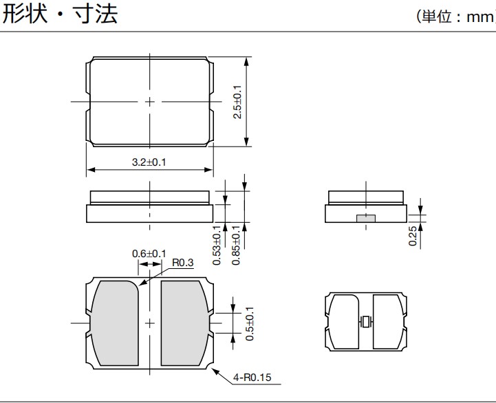 CX3225GA27000D0PTVCC-水晶振動子-高速車載網(wǎng)絡(luò)-27MHZ-Kyocera 尺寸圖
