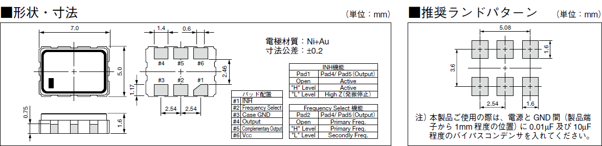 KC7050G622.080P3GD00|LV-PECL差分石英晶振|6G模塊晶振 尺寸圖