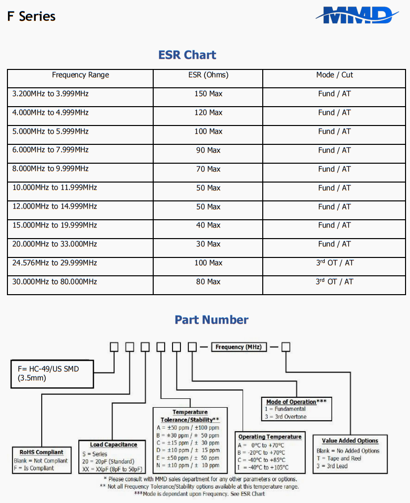 | FF18EA1-14.7456MHZ-T | MMD | F | 0°C ~ 70°C | 14.7456 MHz | ±50ppm | ±50ppm | 18 pF |