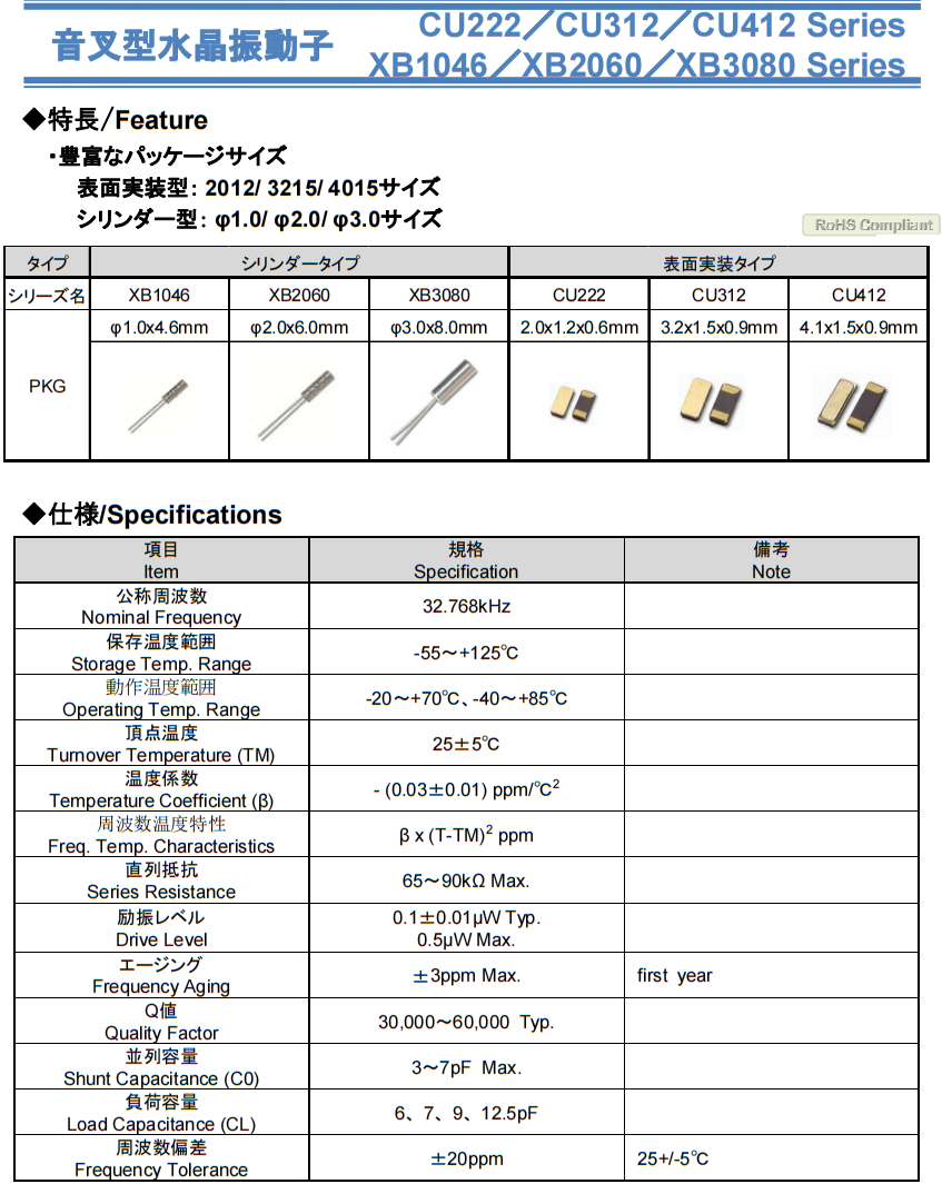 日本納卡晶振,無人機(jī)信號(hào)傳輸晶振,CU222 32.768K音叉晶體