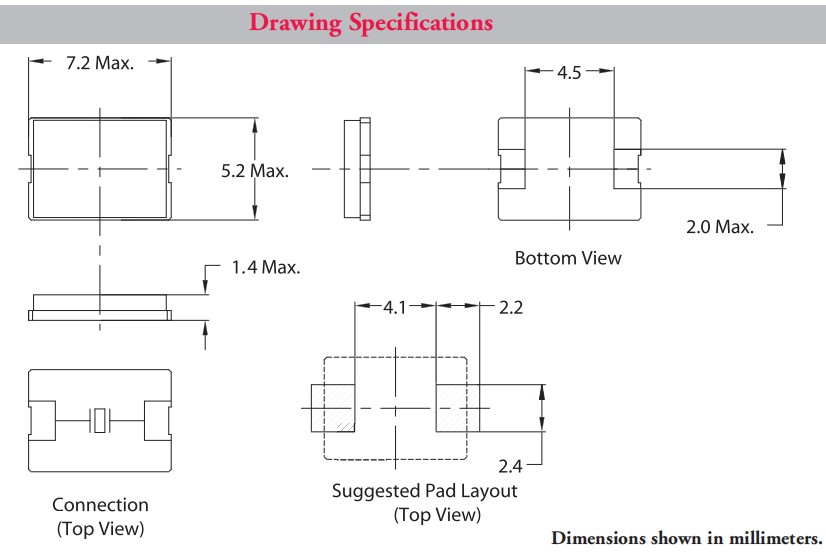NF5-48.000-A-B-B-B-20pF,7050mm,美國(guó)NEL耐爾晶振,高可靠性晶振,尺寸圖