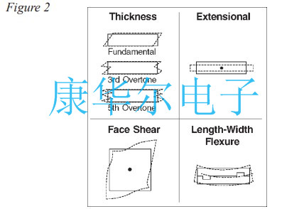 如上所示的元素以各種模式振動,其中最重要的是伸展的,彎曲的和剪切.振動模式?jīng)Q定了晶振最大頻率,穩(wěn)定性與溫度,和給定元素的阻力.各種模式振動如圖2所示,同時進行比較各種頻率穩(wěn)定性與溫度有關(guān)如圖3所示.