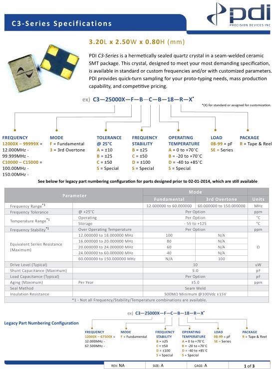 | *1 - Not all Frequency/Stability/Temperature combinations are available | ||||