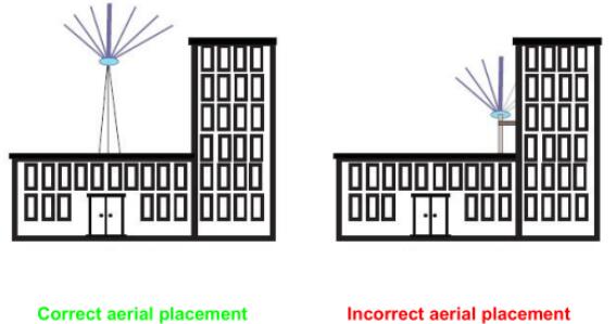 為了獲得最佳性能,請選擇海上圓頂型天線。天線與時鐘模塊之間的連接電纜應小于10m。如下圖所示,天線應放置在空曠的地方,以幫助時鐘模塊找到衛(wèi)星信號,否則可能會影響時鐘模塊的性能甚至正常工作狀態(tài)。