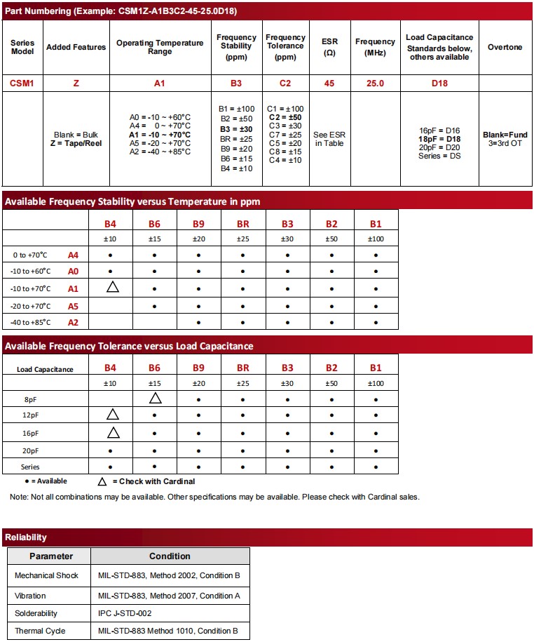 | CSM1Z-A1B2C3-40-24-0D12 | Cardinal晶振 | CSM1 | MHz Crystal | 24MHz |