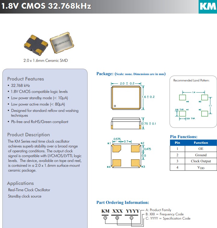 | KM3270004 | Diodes Crystal | SaRonix-eCera™ KM | 32.768kHz | ±25ppm | -40°C ~ 85°C |