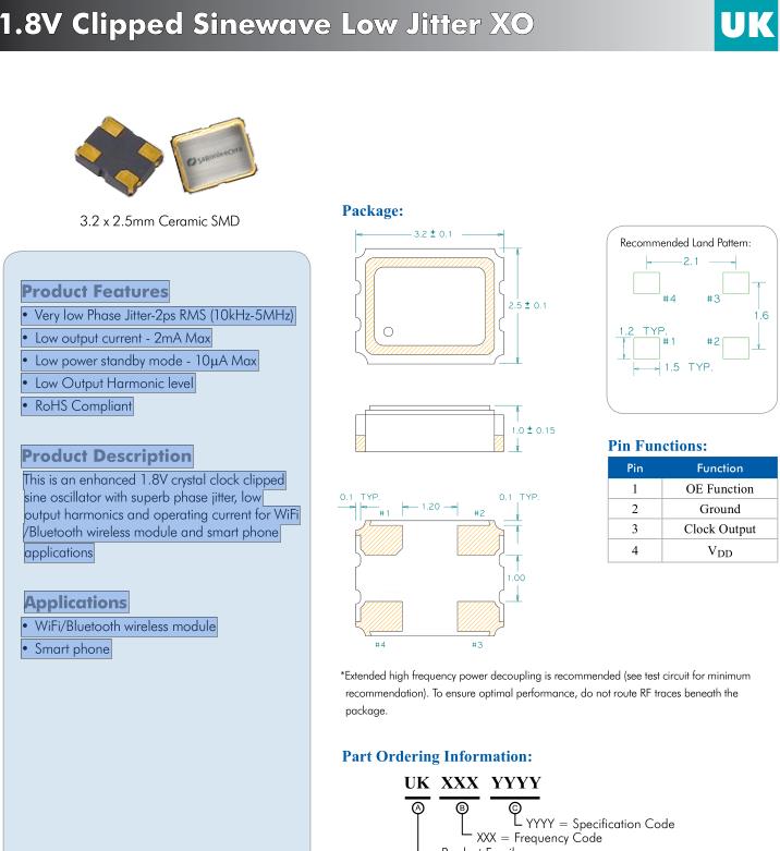| UK2600002 | Diodes晶振 | SaRonix-eCera™ UK | 26MHz | ±20ppm | -30°C ~ 85°C |