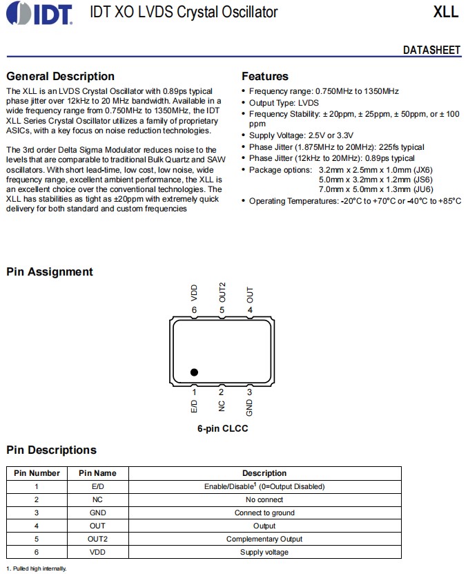 | XLL73V500.000000X | IDT晶振 | LVDS | 3.3V | OSC VCXO 500.000MHZ SMD |