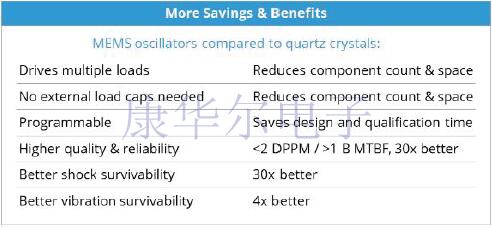 在遇到石英晶體振蕩器成本過高,方案難以通過的情況下,不妨可以考慮采用MEMS振蕩器代替的可能性,自2005年SiTime公司開發(fā)出降低成本的方法以來,MEMS可編程振蕩器得到快速發(fā)展,目前已成功代替多種石英振蕩器料號.從以上3個(gè)方面看,選對正確的設(shè)計(jì),就可以降低采購的成本.