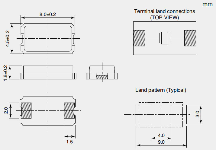 | 標準頻率(L×W×H : mm) | 8.0×4.5×1.8 | |