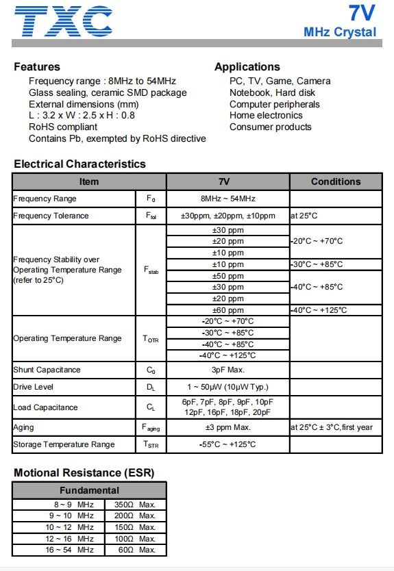 | 7M-16.000MAHV-T | TXC晶振 | 7M | MHz Crystal | 16MHz | ±30ppm | -40°C ~ 85°C |