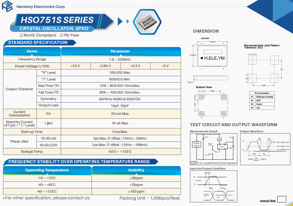 | X2B032000D81H-U | 加高晶振 | HSX221SA | 32 MHz | ±20ppm | 8pF |
